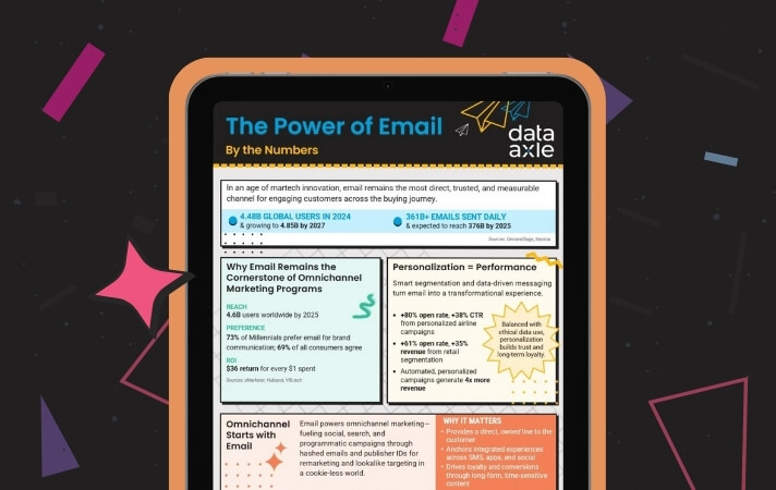 Behind every great email program is great data. Data Axle empowers marketers with accurate, ethically sourced, and privacy-compliant data that fuels smarter targeting, deeper personalization, and stronger ROI. From data strategy to creative execution, we help brands turn insights into measurable outcomes.