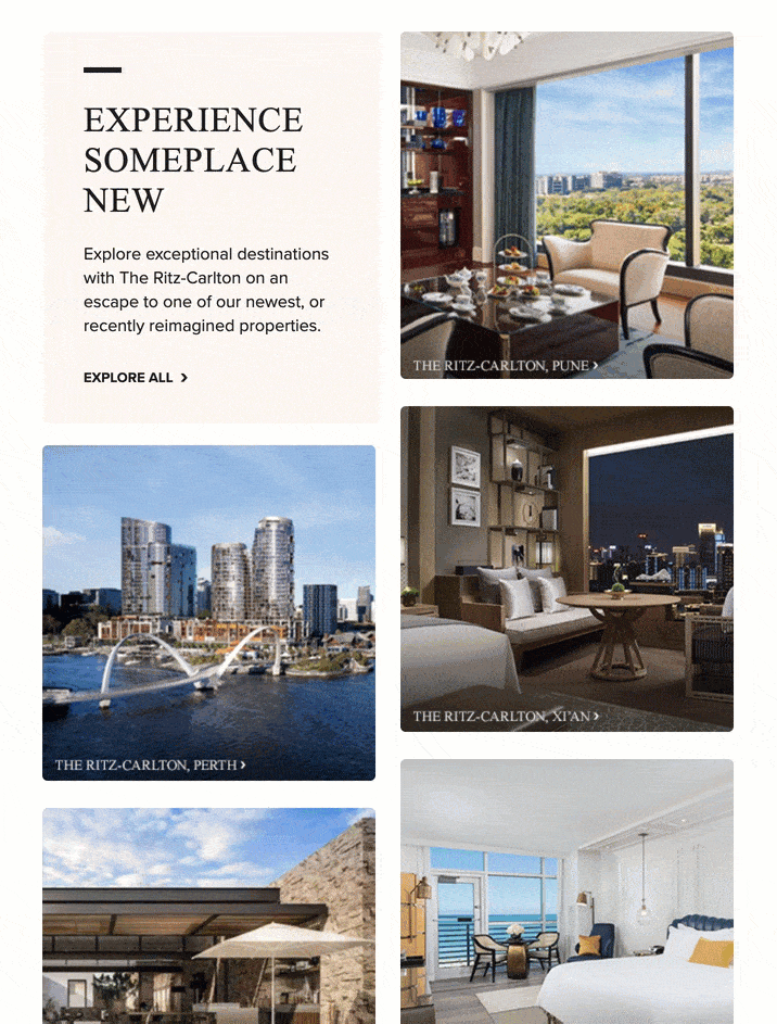 To play on the theme of “new”, they also took the opportunity to introduce the newest hotels to guests across the world. The Ritz-Carlton’s New Year’s campaign was designed with two objectives in mind – show appreciation for loyal customers of the hotel brand and drive bookings at some the newest (and recently updated) hotel properties.